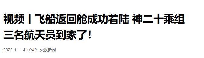 2025年11月14日,就在刚刚,神舟二十一号载人飞船返回舱在东风着陆场成功着陆。按照央视新闻的报道,“返回舱落地,搜救人员抵达现场”,“三名航天员报告状态良好”。根据央视新闻的报道,“针对神舟二十号飞船返回舱受损且无法确保载人安全返回的意外情况,先由神舟二十一号载人飞船,搭载神舟二十号乘组返回地面,此后将发射神舟二十二号载人飞船前往天宫空间站,接替神舟二十一号载人飞船成为神舟二十一号乘组返程飞船”。说白了,现在是神舟20不返回,航天员坐着神舟21乘组的飞船回来了,后续再打上去一发神舟22。 央视新闻的报道截图